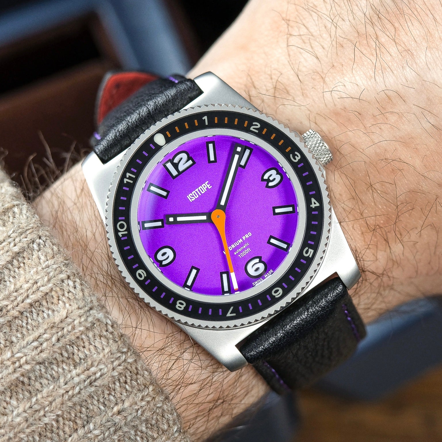 Get ready to turn heads and start conversations, folks, because the Limited Edition Isotope Hydrium NSFW Purple isn't just a watch; it's an EXPERIENCE. Strap it on with the leather band and purple stitching for that touch of class, or go wild with the FKM Orange strap – either way, let the purple reign supreme!